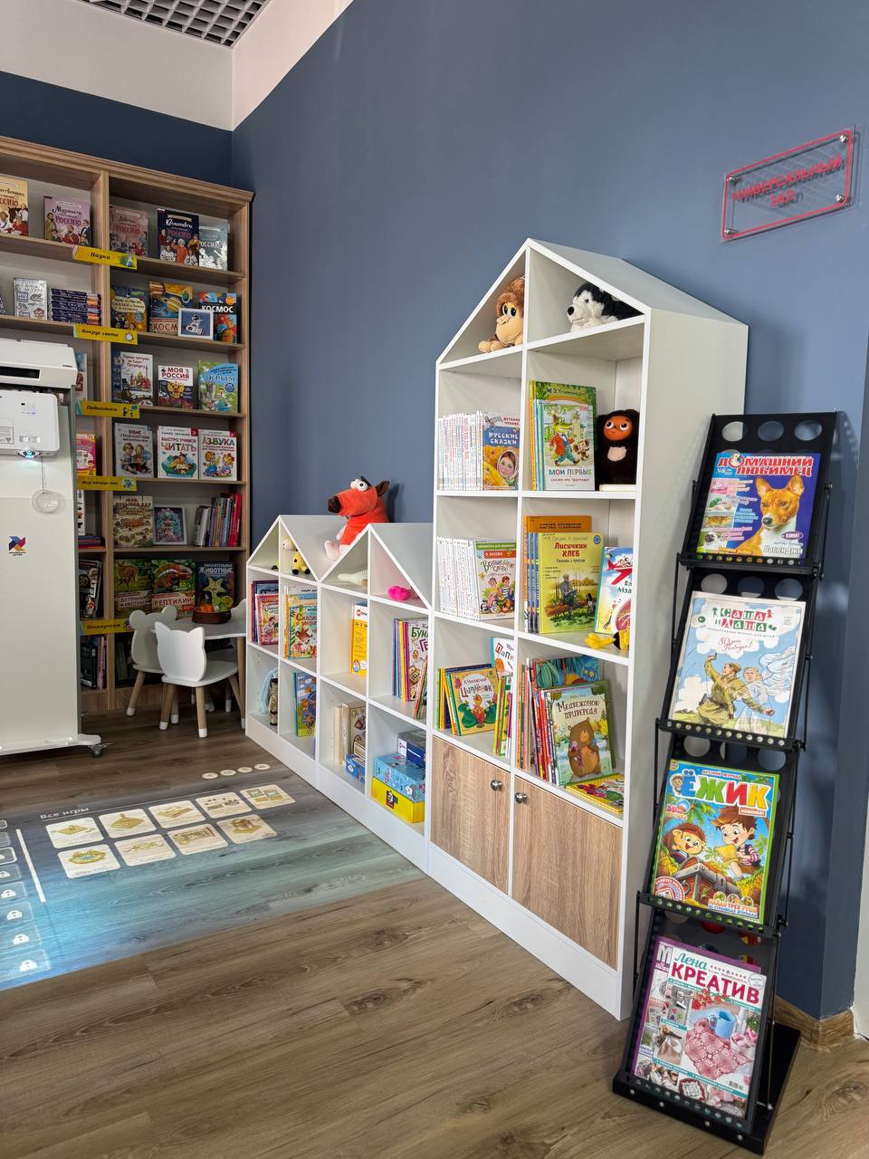 Площадь библиотеки небольшая, но новое оборудование и мебель помогут организовывать многофункциональное пространство для читателей разного возраста. Интерактивные модули, в том числе интерактивный пол, программно-аппаратные комплексы, оборудование для создания мультфильмов, заинтересует младших школьников, а качественное мультимедийное оборудование позволит вывести на новый уровень проведение массовых мероприятий. Кроме того, в фонд библиотеки поступили новые издания, среди которых произведения классиков и современных авторов, энциклопедии и справочники, а также поэтические сборники.