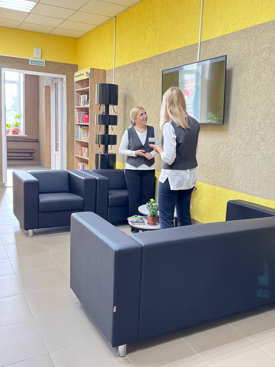 На переоснащение библиотеки по модельному стандарту из федерального бюджета в рамках нацпроекта было направлено около 8 млн рублей. Благодаря этому была оборудована зона ожидания, где предусмотрены стеллажи для книгообмена, а также пространство для проведения выставок.