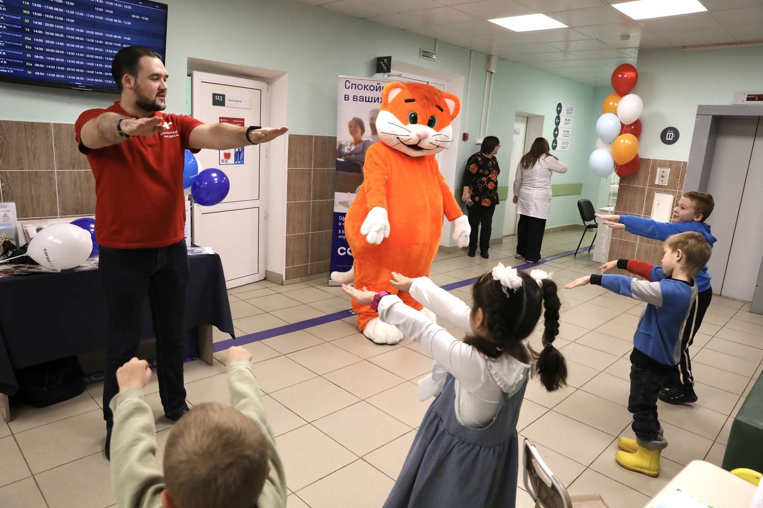 Пока взрослые были заняты обследованиями, для детей проводили «веселую зарядку», творческие занятия и викторины.