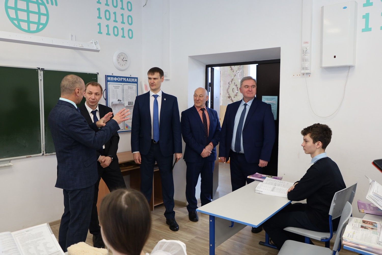 В средней школе №1 гости посетили несколько учебных классов, пообщались с педагогами и их учениками. В образовательном учреждении обучаются более 540 детей.