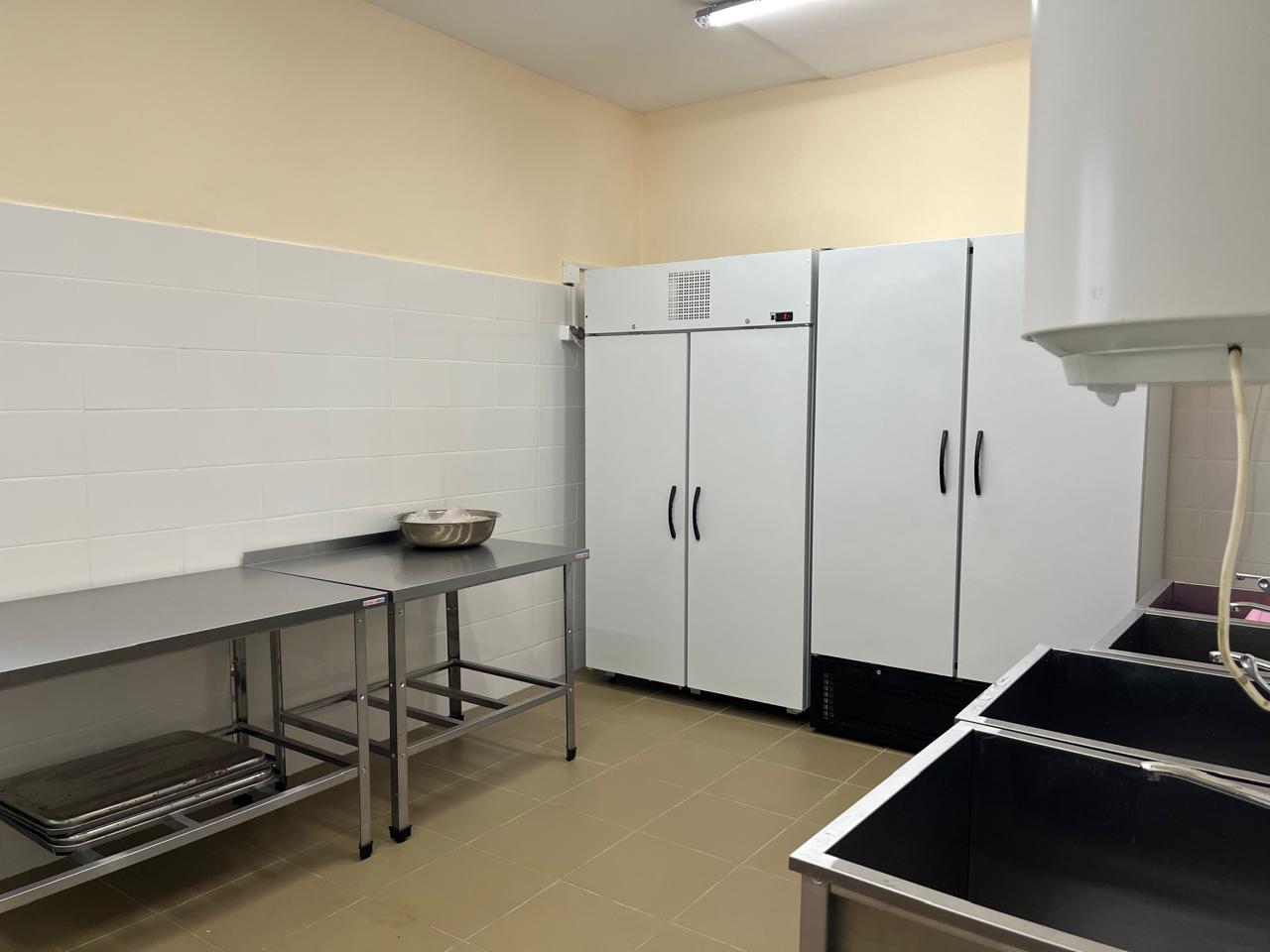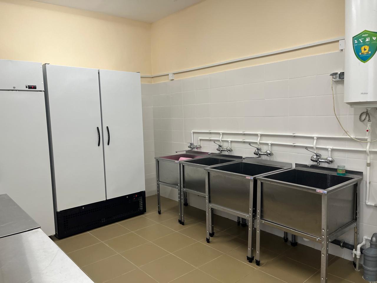 Все помещения пищеблока были перестроены согласно современным санитарно-эпидемиологическим нормам, с учетом соблюдения требования кулинарной поточности: от входной зоны, куда поступают продукты и полуфабрикаты, до подачи готовой еды.