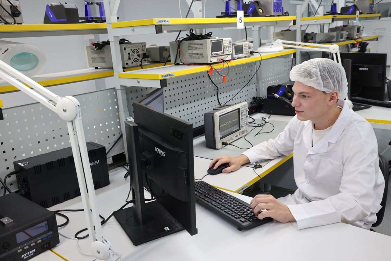 Глебу Никитину показали, как студенты проектируют электронные устройства, создают 3D-модели, изучают параметры электронных компонентов. Зона поверхностного монтажа оснащена оборудованием, которое есть на всех предприятиях-партнерах, входящих в состав кластера, поэтому обучение в мастерской сокращает срок адаптации на производстве.