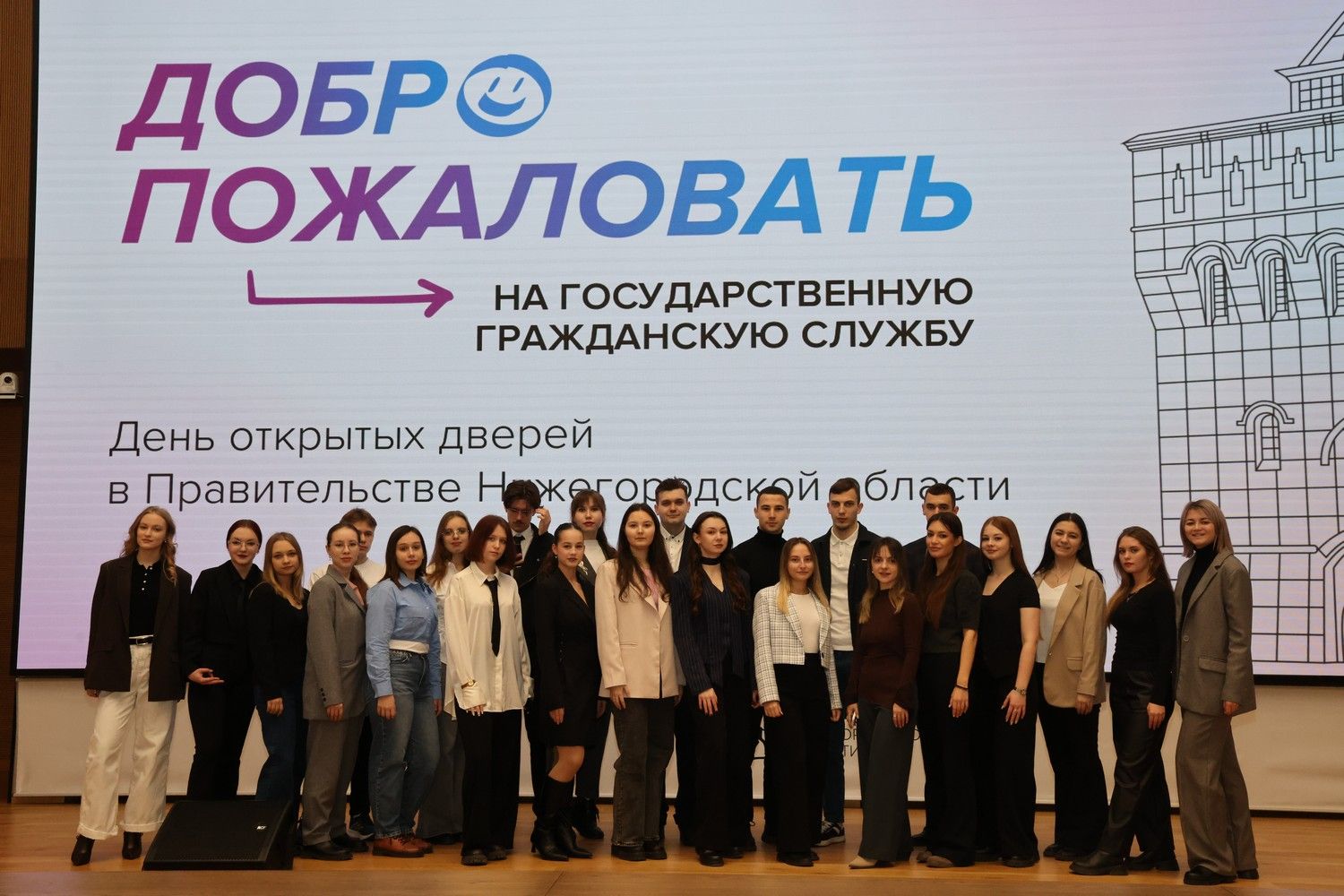 В Дне открытых дверей приняли участие студенты семи вузов: ННГУ им. Н. И. Лобачевского, НГЛУ им. Н. А. Добролюбова, Нижегородского института управления — филиала РАНХиГС, Российского государственного университета правосудия, ННГАСУ, НГТУ им. Р. Е. Алексеева, НГПУ им. К. Минина. Для студентов провели встречу с руководителями правительства региона и мастер-классы, где они смогли получить практические советы о профразвитии. Так, министр международных и межрегиональных связей Нижегородской области Ольга Гусева подчеркнула важность постоянного обучения и участия в проектах, а также рассказала о своей работе по развитию международных связей Нижегородской области. Министр экологии и природных ресурсов Нижегородской области Владимир Тужилин поделился своим опытом работы в сфере государственной власти и рассказал об экологических проектах, которые реализуются в регионе, в том числе по нацпроекту «Экологическое благополучие». Министр градостроительной деятельности и развития агломераций Дарья Шунаева рассказала о том, какую работу областное правительство проводит в части градостроительной политики.