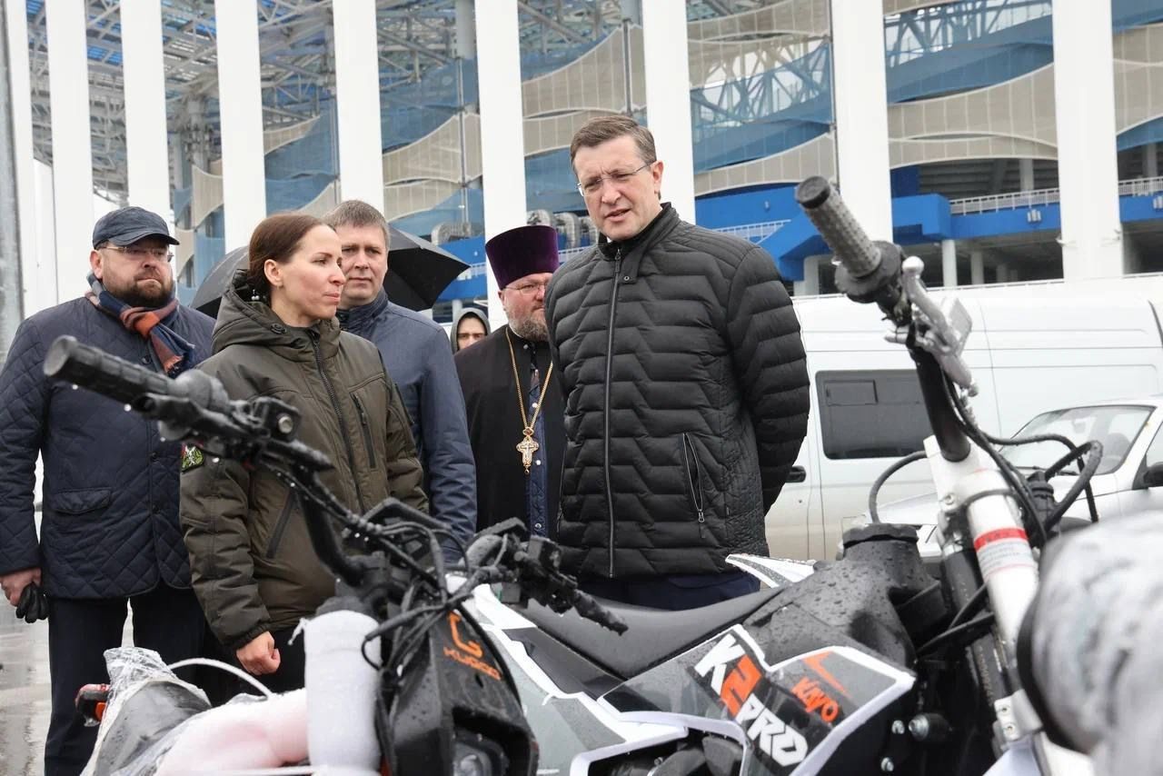 «Работу по отправке гуманитарной помощи нашим бойцам мы ведем регулярно. Уже отправили более 4 800 тонн. Сегодня с очередной партией собрали и передаем все необходимое и, конечно, самое востребованное — это высокотехнологичное оборудование. Мы гордимся тем, что беспилотные летательные аппараты разного назначения разработаны и произведены в Нижнем Новгороде. У нас есть свои разработчики и научно-производственный центр, который активно развивает это направление. Такие модели дронов, как „Князь Пожарский“, уже известны и стали на передовой легендарными. Дал поручение сформировать долгосрочный заказ нашим производителям для нужд воинских частей. Конечно, этот конвой — не только оборудование, техника и автомобили, но и частица тепла для наших бойцов, подтверждающая, что мы их поддерживаем и ждем», — сказал Глеб Никитин.
