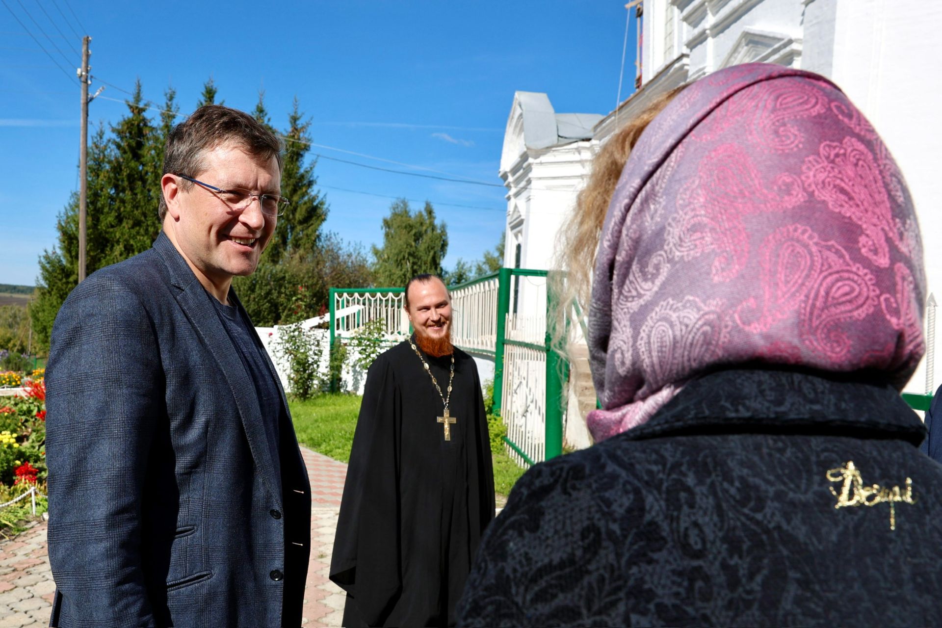 В этот же день глава региона также посетил село Бортсурманы Пильнинского округа. Вместе с главой местного самоуправления муниципалитета Сергеем Бочкановым он побывал в Церкви Успения Пресвятой Богородицы, где в настоящее время ведутся плановые реставрационные работы.