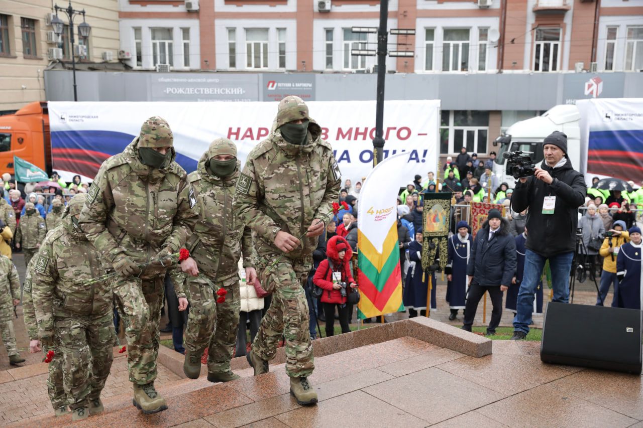 16:224 ноября в Нижнем Новгороде на площади Народного единства состоялся торжественный митинг, посвященный Дню народного единства. Ключевым событием стала торжественная отправка отряда из 30 добровольцев на защиту Родины. Также в День народного единства был направлен очередной гумконвой с грузом для бойцов СВО и для жителей приграничных регионов.