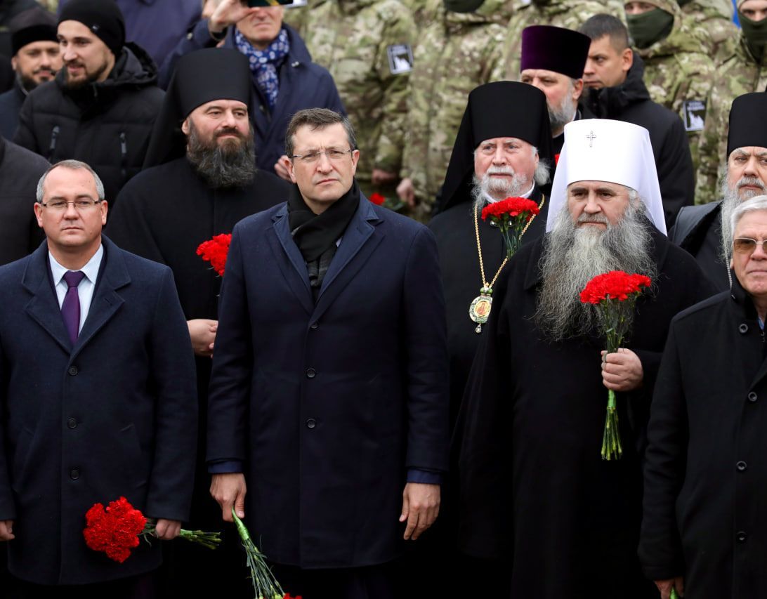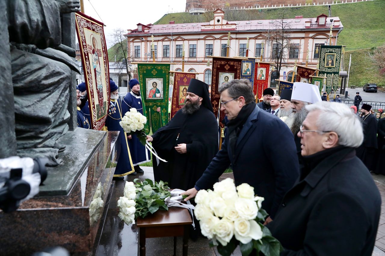 У памятника Минину и Пожарскому собрались представители власти, депутатского корпуса, различных конфессий, ветеранских объединений, общественных организаций, неравнодушные нижегородцы и гости города.