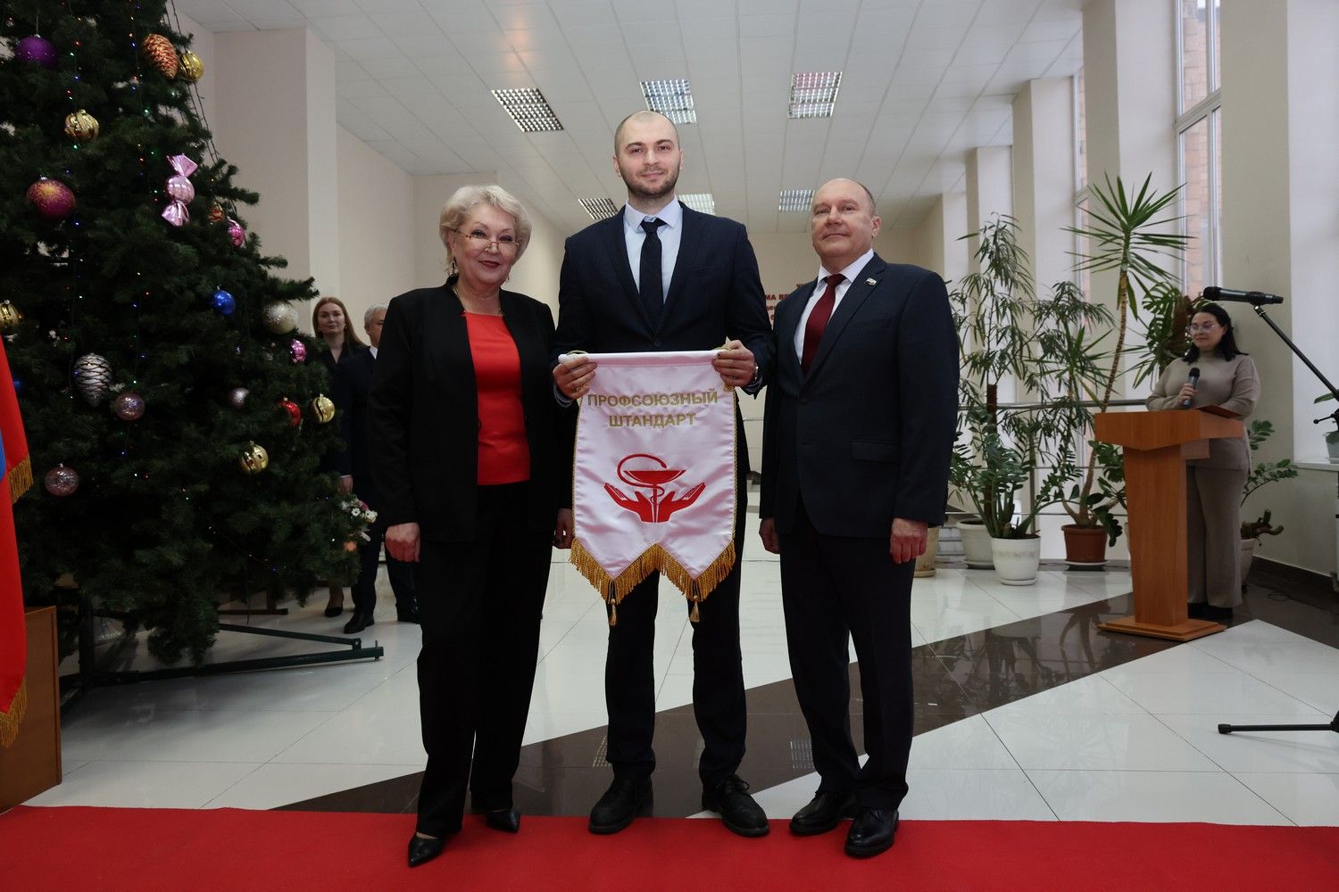 В завершение торжественной церемонии председатель профсоюза работников здравоохранения Василий Приказнов вручил переходящие штандарты профсоюза и медработников, а также кубки профильного физкультурно-спортивного клуба от профсоюза здравоохранения «Гиппократ».