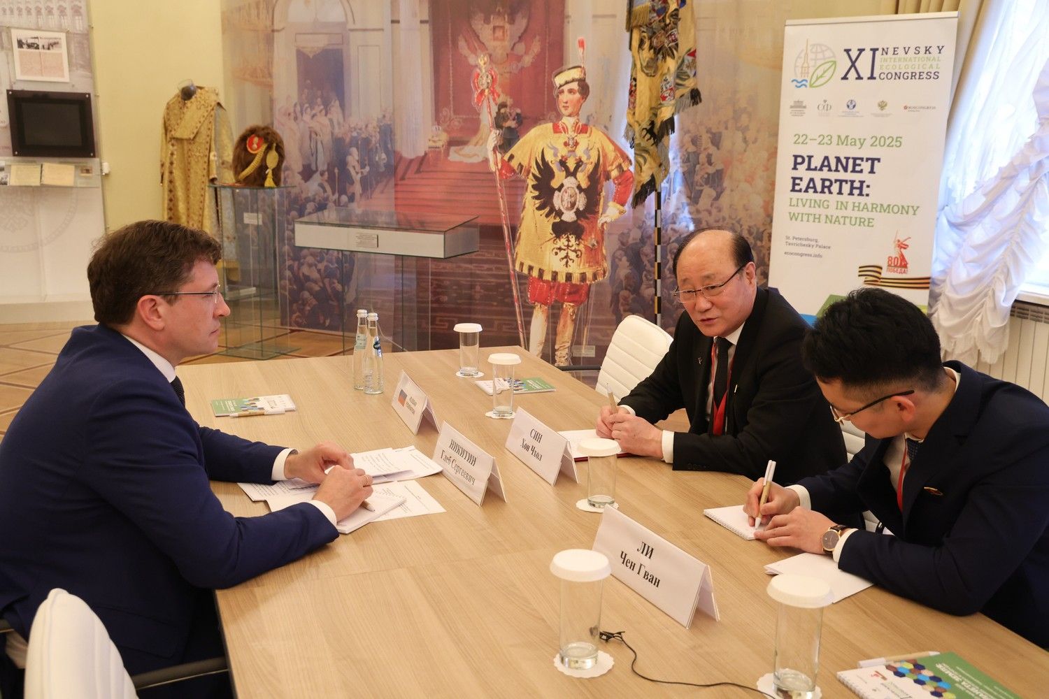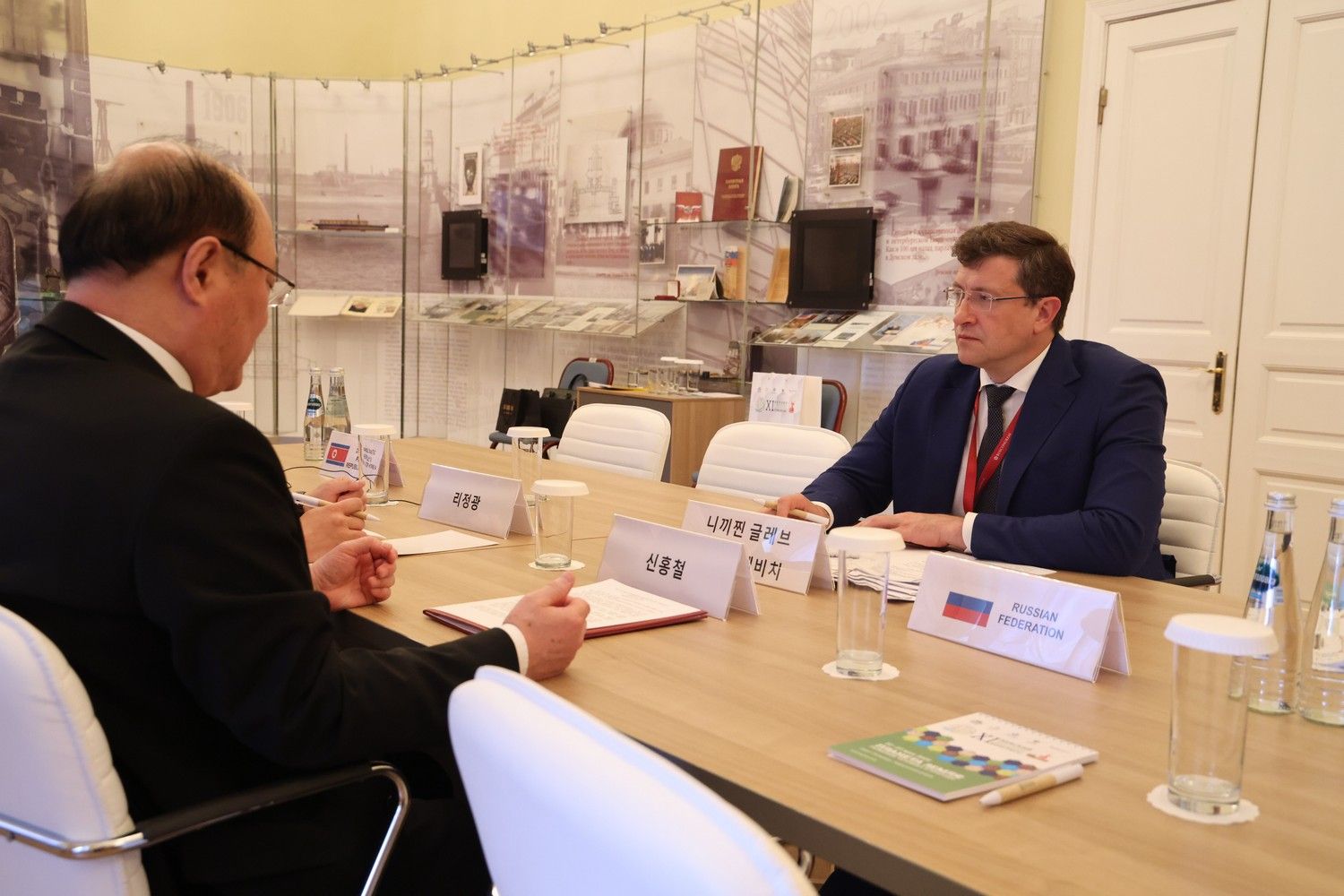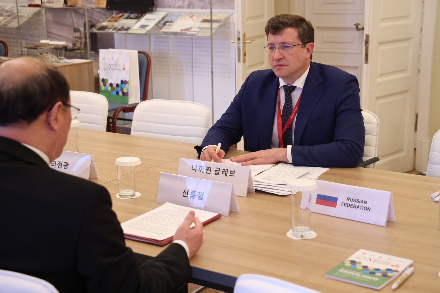 14:18Губернатор Нижегородской области Глеб Никитин провел встречу с чрезвычайным и полномочным послом Корейской Народно-Демократической Республики в РФ Син Хон Чхолом на площадке ХІ Невского международного экологического конгресса, проходящего в Санкт-Петербурге. Главной темой встречи стали перспективы сотрудничества между Нижегородской областью и КНДР.