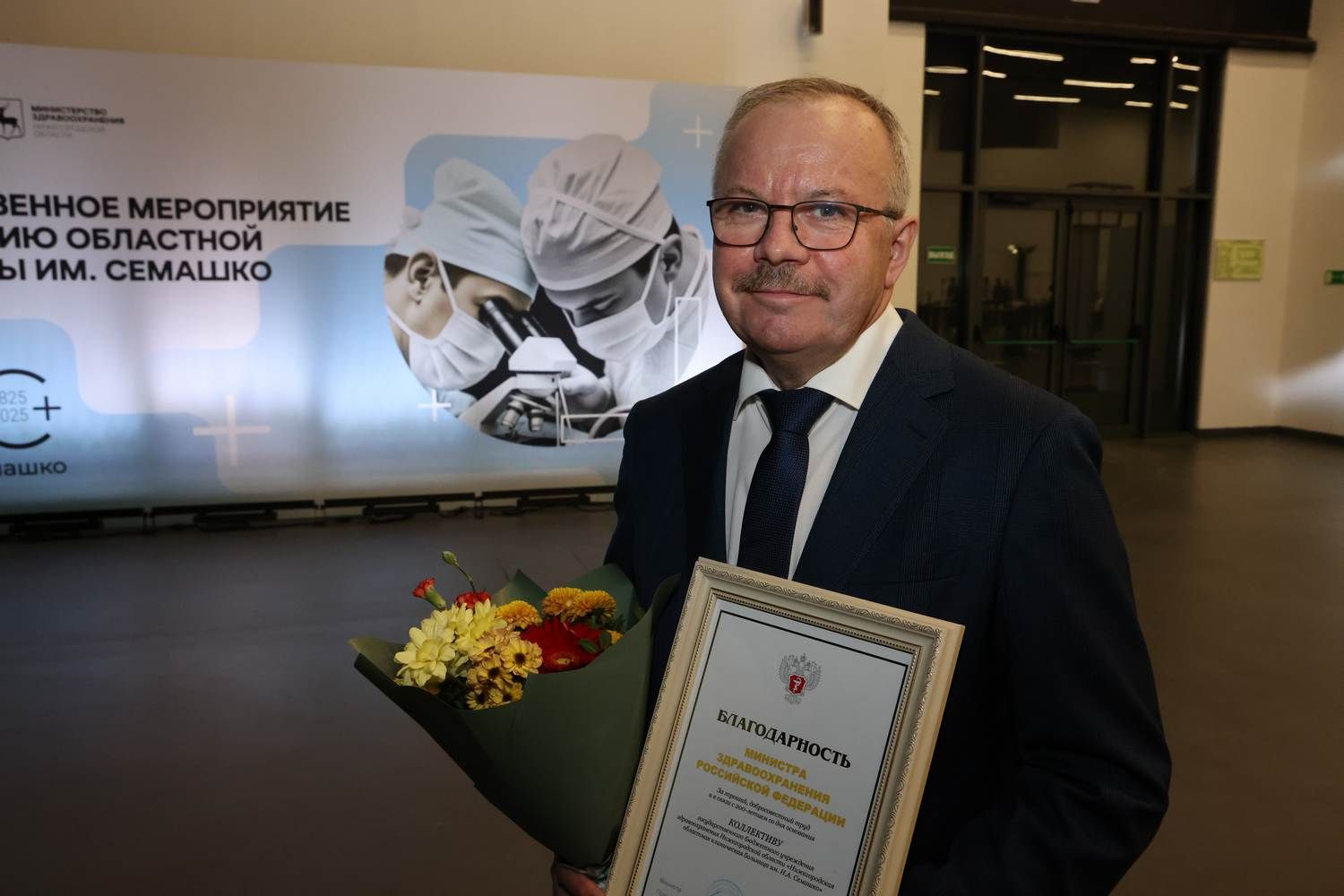 Заместитель губернатора Нижегородской области Андрей Чечерин зачитал поздравление от министра здравоохранения России Михаила Мурашко в адрес коллектива больницы.