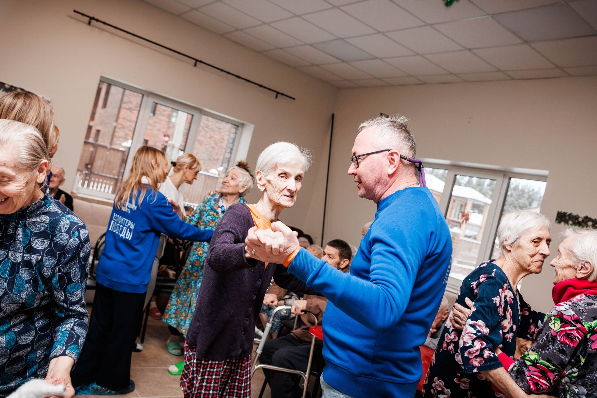 Первыми волонтёры навестили проживающих в семейном доме в рабочем посёлке Большое Козино и в Нижегородском доме-интернате для ветеранов войны и труда в Зелёном городе. Гости устроили праздничный концерт с песнями, стихами и словами благодарности в адрес ветеранов. Каждый пожилой человек получил персональное поздравление и памятные подарки, а еще потанцевал под любимые песни молодости с Дедом Морозом.