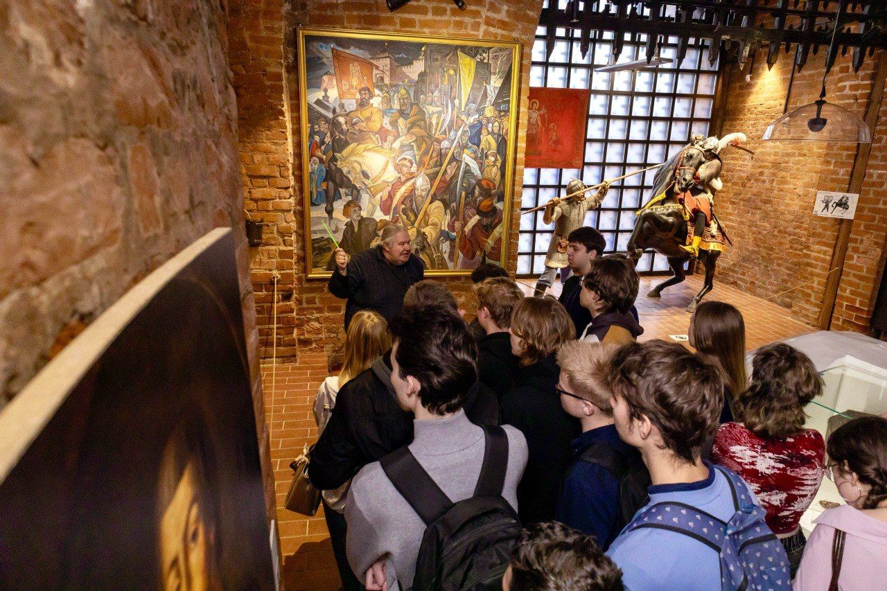 Второй блок был посвящен экспозиции «Подвиг народного единства» в Ивановской башне Нижегородского кремля. Здесь, на маршруте народного ополчения 1612 года, студенты смогли разобраться в сложностях Смутного времени, с помощью мультимедийной карты проследили ход событий и отметили решающую роль нижегородцев в освобождении Москвы. Участники экскурсии изучили особенности вооружения воинов XVII века и увидели, как выглядел город этой эпохи на детальном макете Кремля.