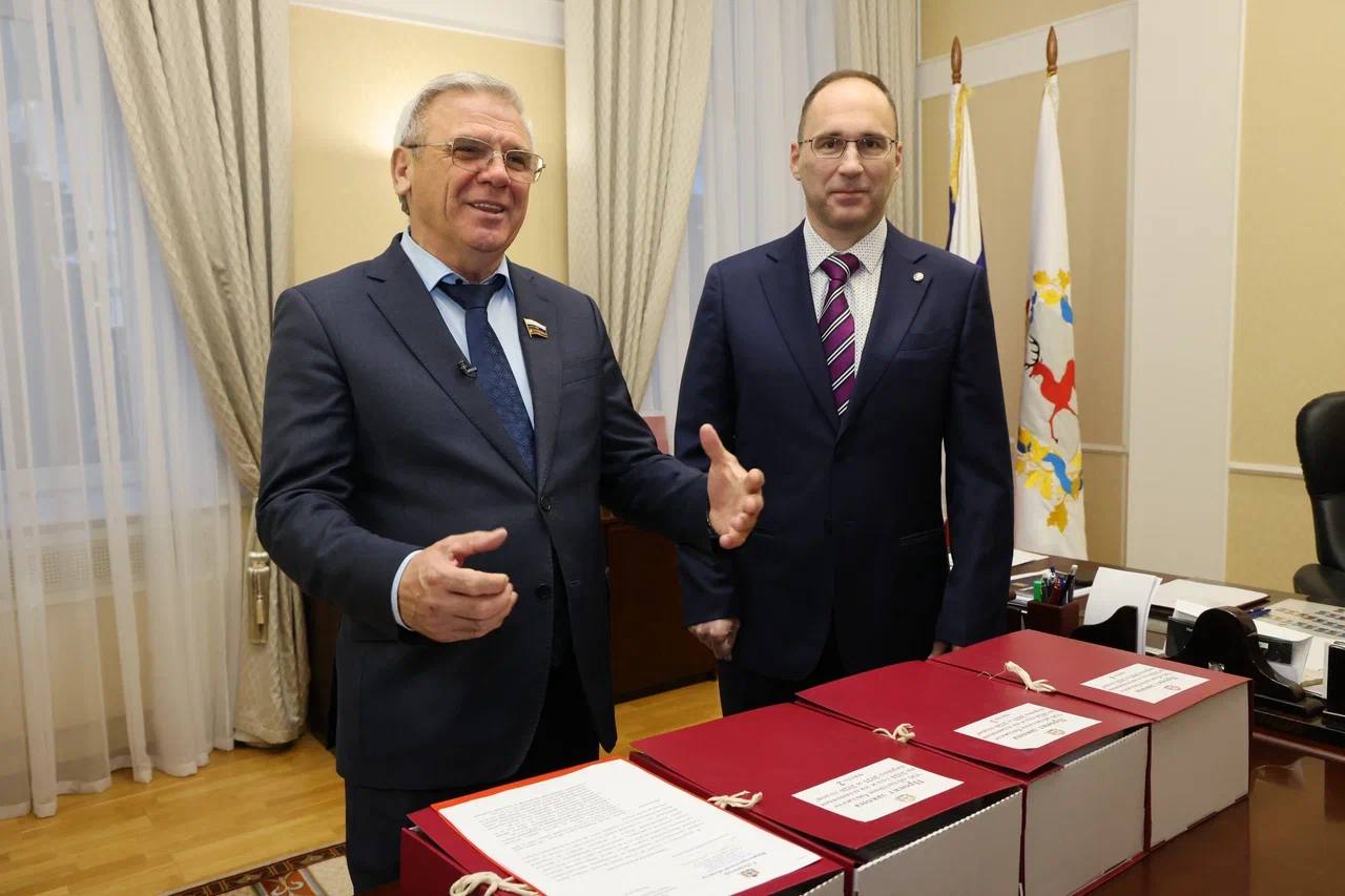 18:0325 октября 2023 года в Законодательное собрание Нижегородской области внесен проект областного бюджета на 2024 год и на плановый период 2025-го и 2026 годов. Проект главного финансового документа области за подписью губернатора Глеба Никитина передала председателю регионального парламента Евгению Люлину и. о. министра финансов Нижегородской области Ольга Сулима.