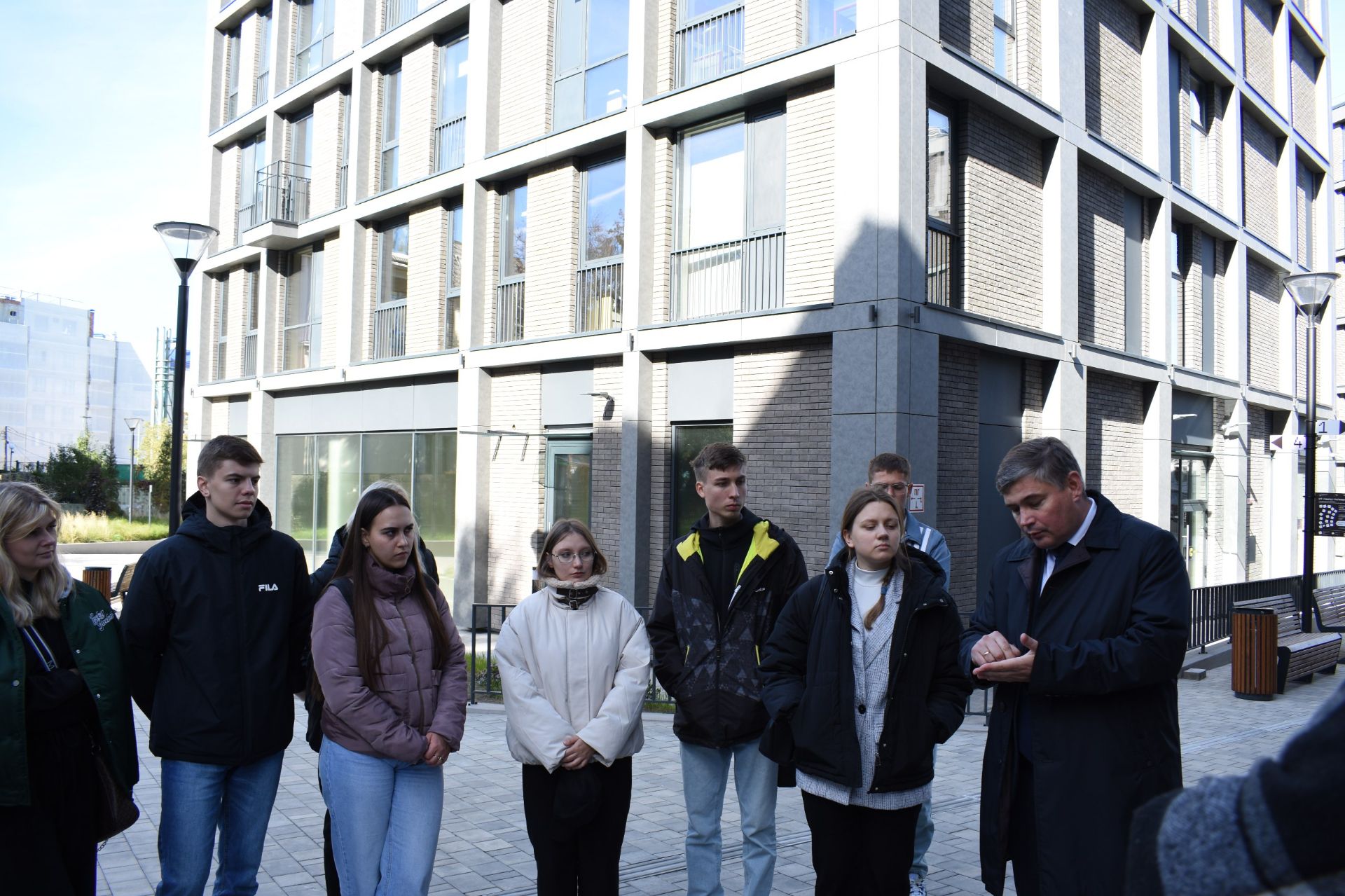 На лекции магистранты смогли узнать об оригинальных проектных решениях корпусов и комнат построенных общежитий, технологиях строительства и скрытых функциональных деталях объектов, направленных на создание комфортных условий для проживания и обучения специалистов ИТ.