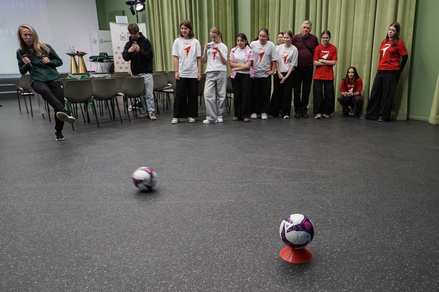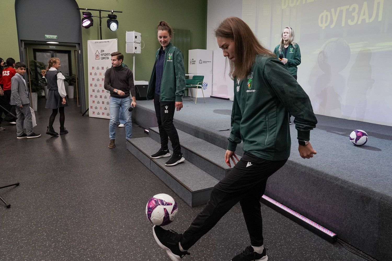Школьники смогли задать личные вопросы звездам мини-футбола Ксении Ольковой, Александре Черновой и Кристине Левен. Они узнали о секретах подготовки команды к соревнованиям высшего уровня и тонкостях спортивного режима.