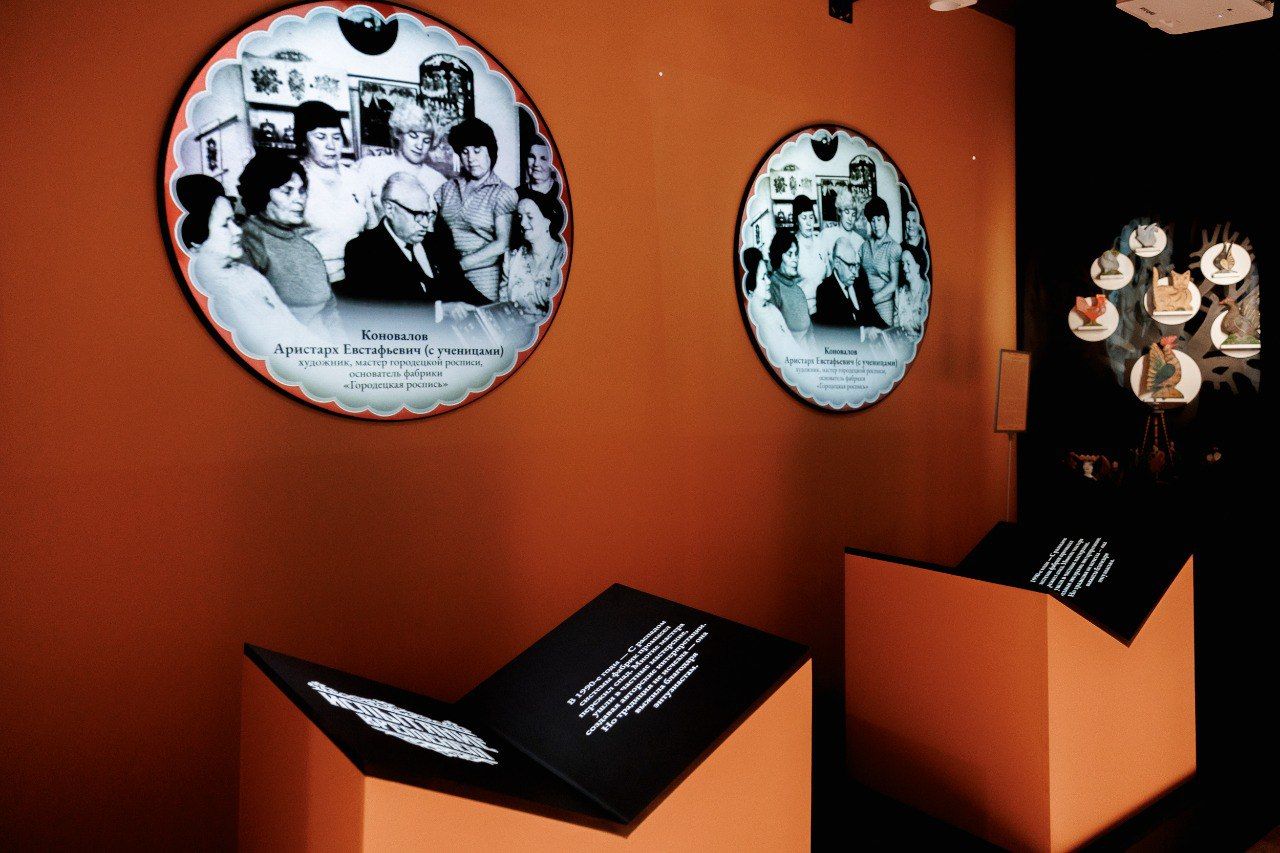 Также в обновленном пространстве появились новые инсталляции, посвященные городецкой росписи, топорной и глиняной игрушке, игрушке из лыка, были установлены мультимедийные комплексы, рассказывающие об истории промысла.
