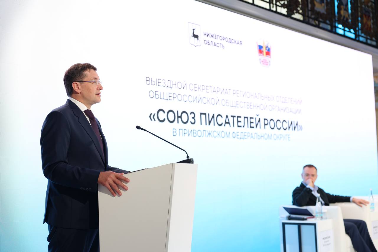 Губернатор Нижегородской области Глеб Никитин поблагодарил Владимира Мединского за внимание к региону и за большую работу, которая была проведена с момента назначения на должность 1-го секретаря Союза писателей России.