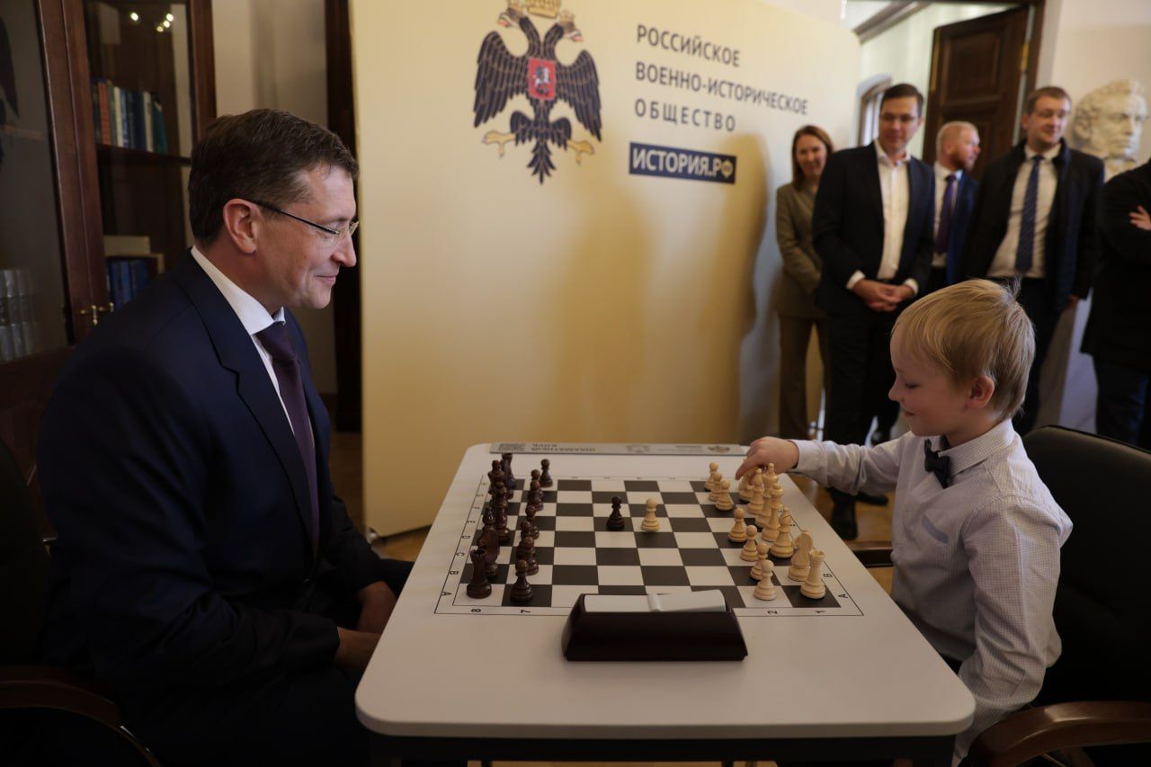 19:3310 октября в Нижнем Новгороде помощник президента РФ, председатель Российского военно-исторического общества Владимир Мединский и губернатор Нижегородской области Глеб Никитин открыли новый шахматный клуб под эгидой Российского военно-исторического общества (РВИО). Он разместился во Дворце детского творчества им. В.П. Чкалова.