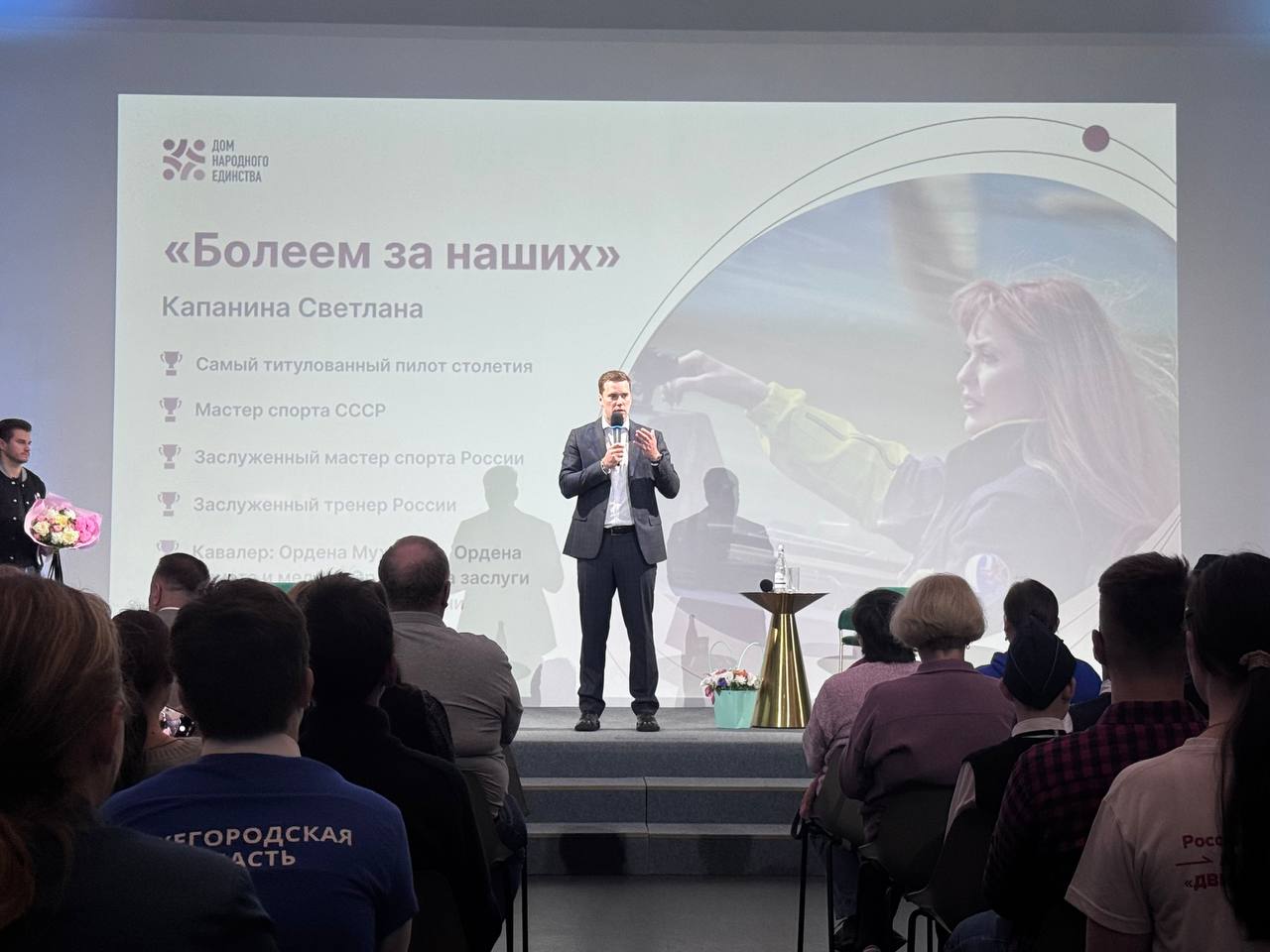 «Встреча с человеком «высокого полёта» во всех смыслах, легендой мировой авиации Светланой Капаниной – это редкая возможность услышать от настоящей звезды спорта «рецепты успеха», профессиональные секреты и просто важные советы. За два года существования проекта «Болеем за наших» мы провели 16 встреч с победителями соревнований регионального, федерального и мирового уровня в различных видах спорта. Общение с успешными спортсменами очень вдохновляет нашу молодежь», - отметил руководитель Дома народного единства Роман Кошелев.